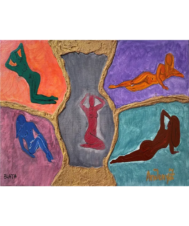 In the centre of the vase is the artist herself; she tries to be all these women at the same time in one: a dreamy young girl, a good listening friend, a sweet lover, just a beautiful woman and a kind loving mother. This is not an easy path, but she chose it herself. And if you cannot help her, try not to interfere. Do not let her down. Sometimes she is scared, but she knows what she wants. Try to be gentle with her and you will gain her precious friendship.